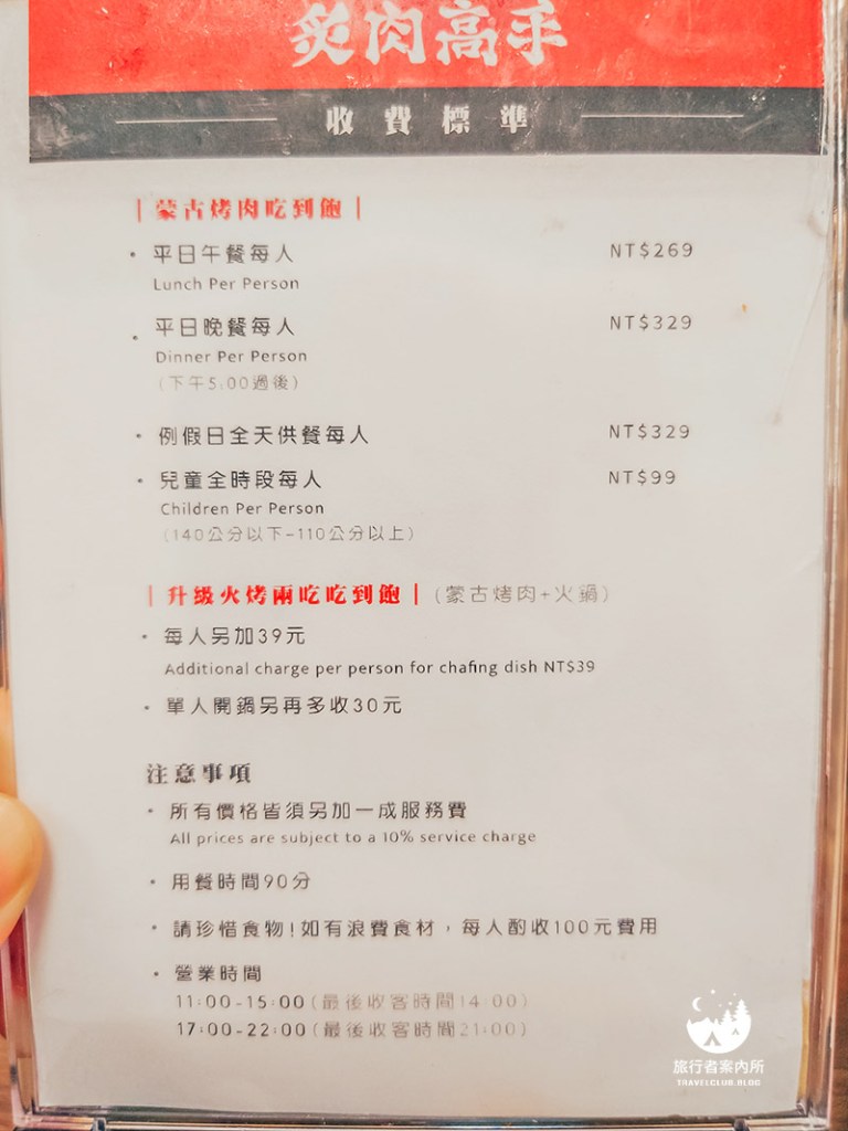 炙肉高手是吃到飽的用餐方式,基本消費平日$269 / 晚餐、假日$329,兒童$99(110以上~140以下)。