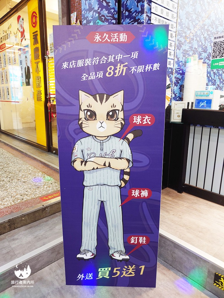 台中可是棒球之都,凡有國際大比賽一定首選咱們的洲際棒球場,當然號稱棒球之都怎能沒有棒球特色店呢?這間「GOLD丘茶飲」,只要你穿著球衣、球褲、釘鞋任一樣符合,飲料不限杯數通通八折非常有誠意,而且杯子也是特別經過設計過全台唯一記分板棒球飲料杯,到洲際看棒球前,先來買杯飲料吧。