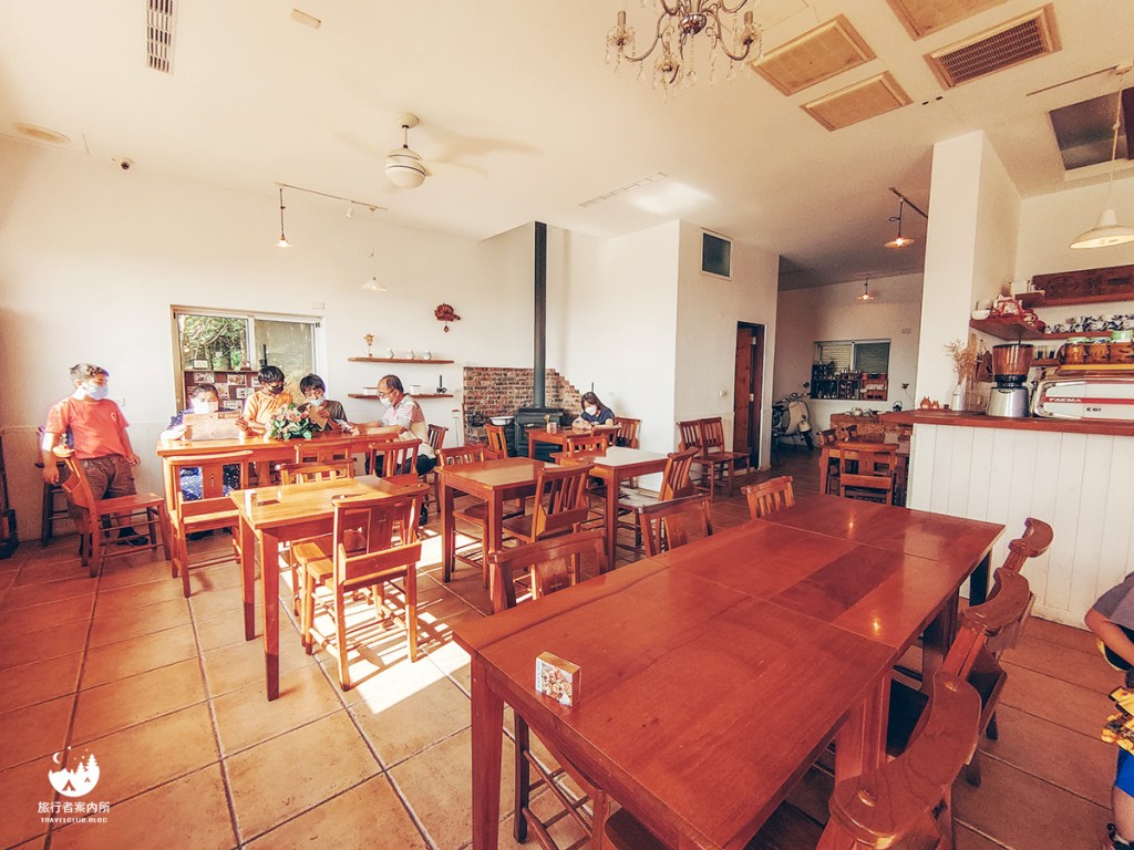 MITAKA 3e CAFE有自己的停車場,往裡面開依照指示停車即可(汽機車都沒問題),停車場晚上還會用燈泡打燈,非常有氣氛,且進入秋冬後樹木會轉成褐色(這植物應該是水杉,類似落羽松),季節感十足!