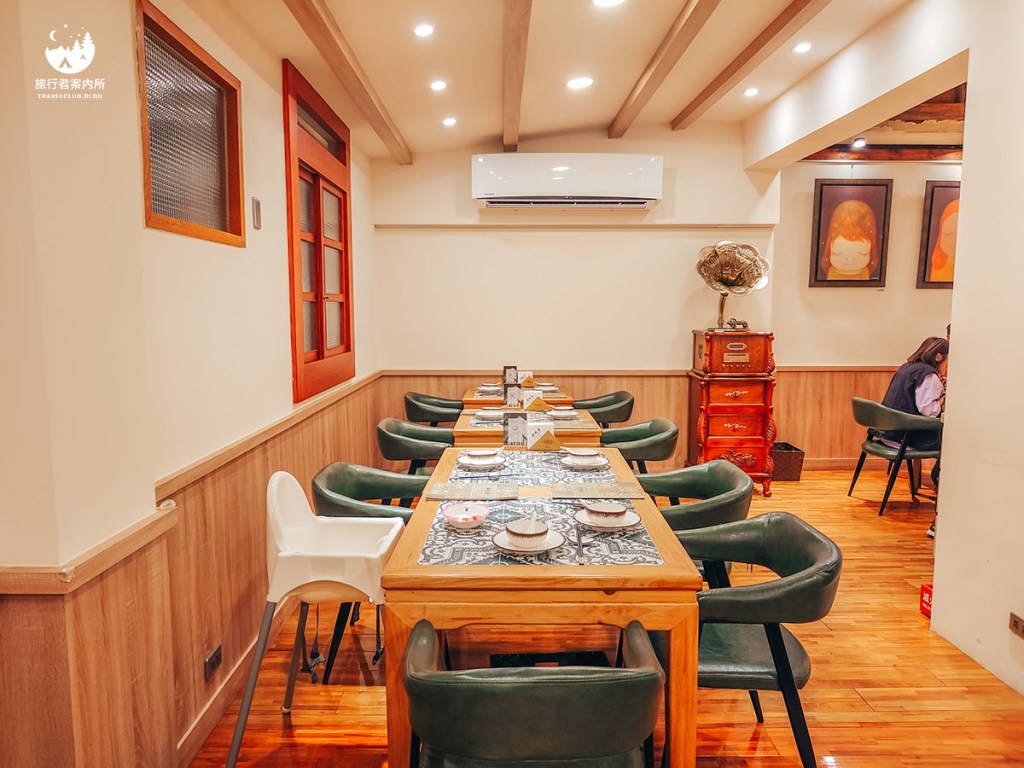 用餐區全部都在2F,大概有兩個區域,由於部分桌位還有不少人在用餐,不打擾其他人就拍幾張環境照給大家參考參考,有點年代感的老宅加上桌椅的搭配,整體配色是滿有品味的喔!