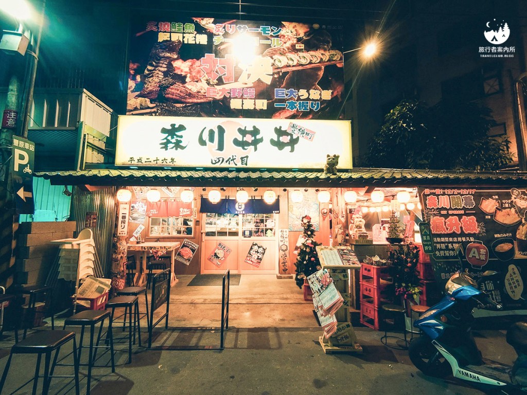 森川丼丼豐原店位於豐原火車站後站出站後,約只要再步行3分鐘(所以外地客人要來吃也很方便),結合半露天的屋台特色,在夜間開店後真的是很有氣氛,瞬間有來到大阪的FU!