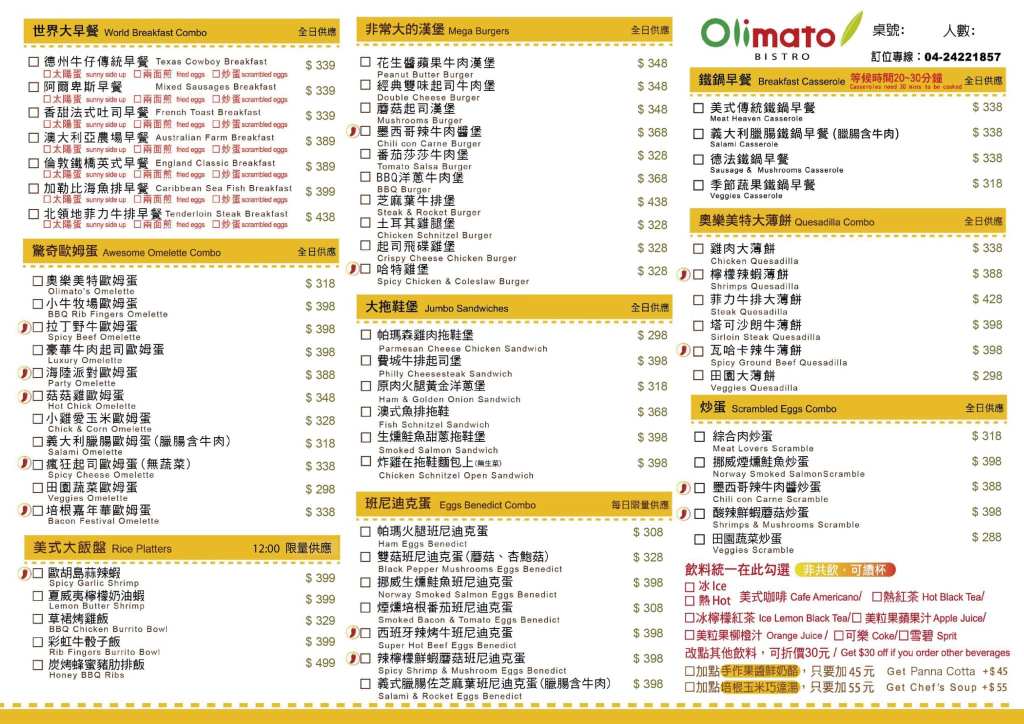 奧樂美特菜單還真的會讓人有點選擇障礙,除了限量供應的品項,其他都是全天候供應的餐點,若要推薦他們的餐點,大早餐系列、歐姆蛋系列、班尼迪克蛋系列是有比較多討聲浪的,但他們家的菜單都屬於長青菜單了,最主要還是選自己想吃的比較重要。
