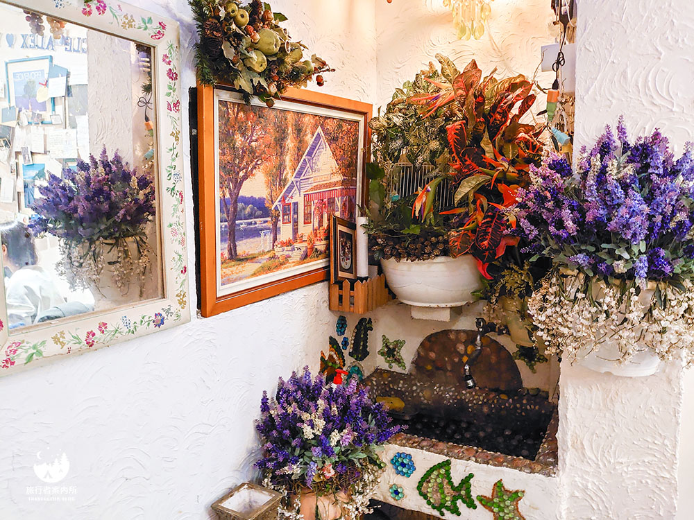 吃飽後稍微再仔細看了一下周圍的環境,雖然外觀是走地中海風,但其實店內的擺設、風格是還滿南法的喔!尤其是那個洗手台,感覺瞬間來到了普羅旺斯,整間店頗有小莊園的FU呢。