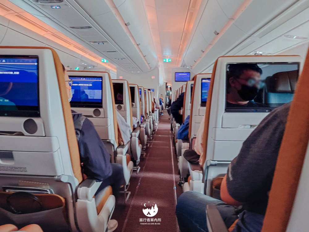 匆匆路過豪華經濟艙的位置,目視空間確實比經濟艙大的多,椅子也不一樣,配有人體工學腿靠和腳踏板,如果搭較長途的班機,這區座位想必會舒適很多呢!