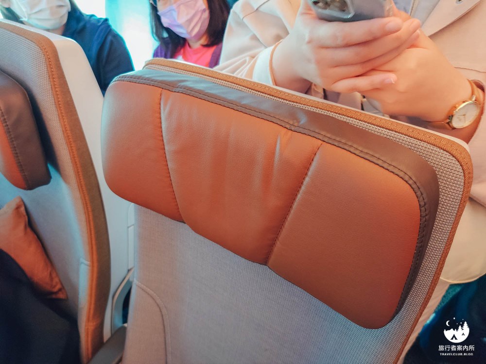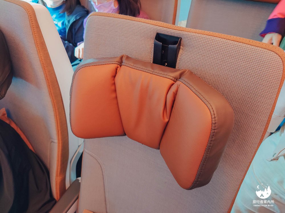 我一定要特別提一下星宇的座位,後方這靠頭的墊子是可以「上下移動」和「彎曲」的,能依照你的身高去調整最舒適的靠頭位置,Asta去程是第一次搭乘笨笨的不知道,直到要下飛機時才發現…。