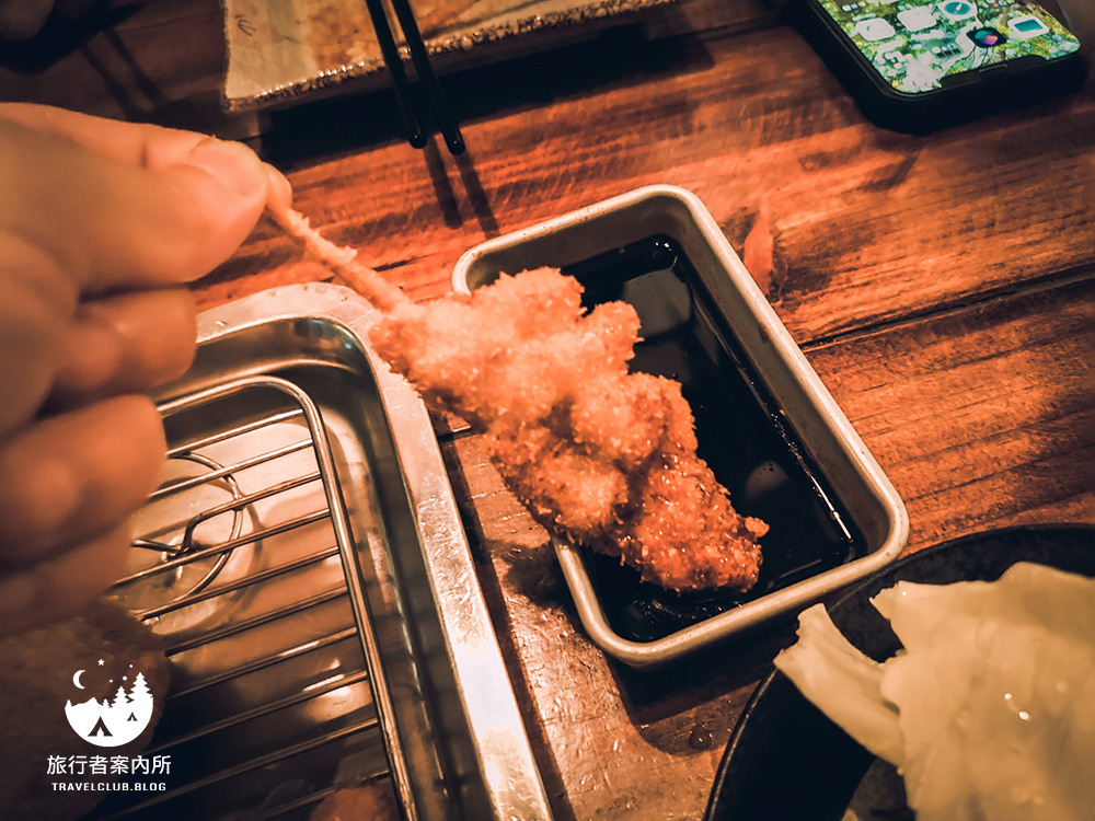 店家特別提供了吃炸串的說明,基本上就是一整串拿下去沾就對了,在台灣吃並沒有強調在日本吃炸串的特別禮儀(不能二次回沾),因為在台灣一桌都是認識的而且醬料就是上一桌的份,所以只要是朋友就不介意,都可以放心大膽的吃。