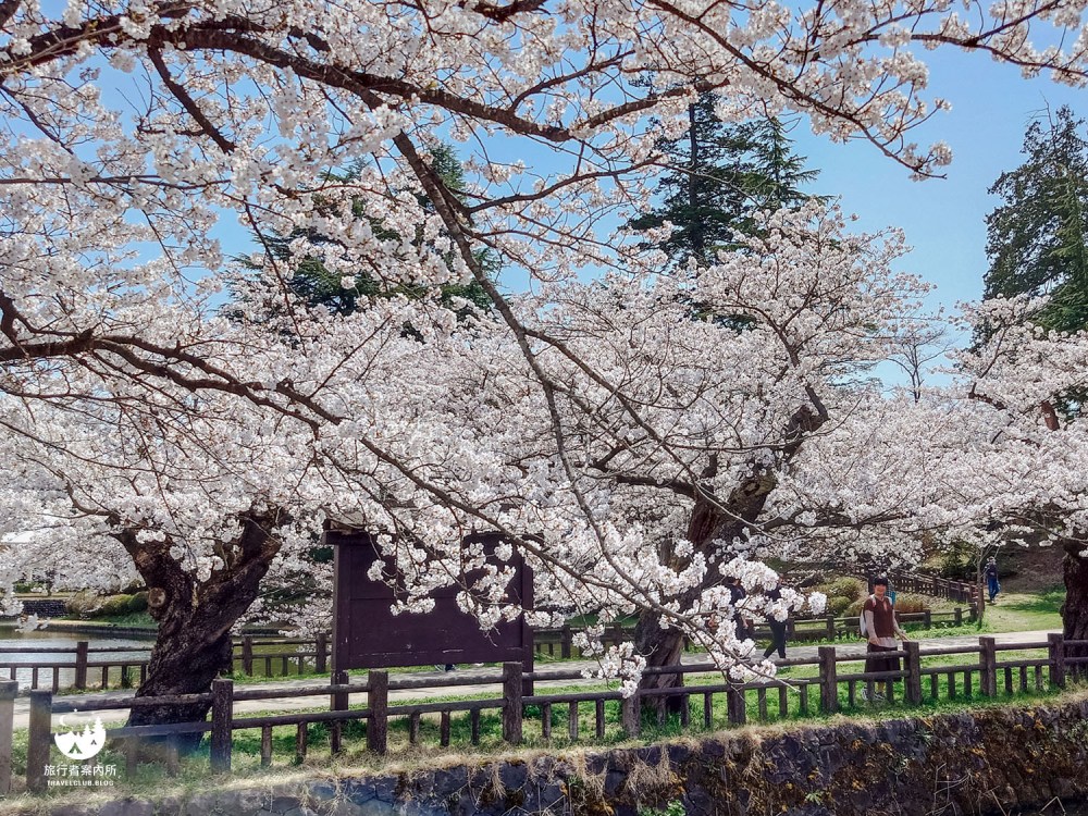 就算是假日,人潮也不會太多,我真心覺得米澤是個很適合喜愛自由行且不想往人擠人地區跑的人來訪的地點,我這樣外圍晃一圈,也就只有幾組人跟著一起走而已,櫻花幾乎可以獨自芳賞。