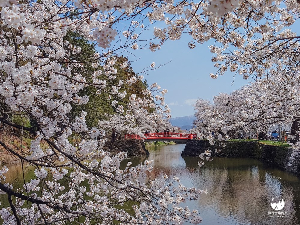 這個景色也是吸引Asta來此賞櫻的主要宣傳照畫面,櫻花、紅橋、山脈,我們台灣要賞能看到山脈的櫻花必須跑到高海拔的地方,但這景色,米澤平地就能看到。