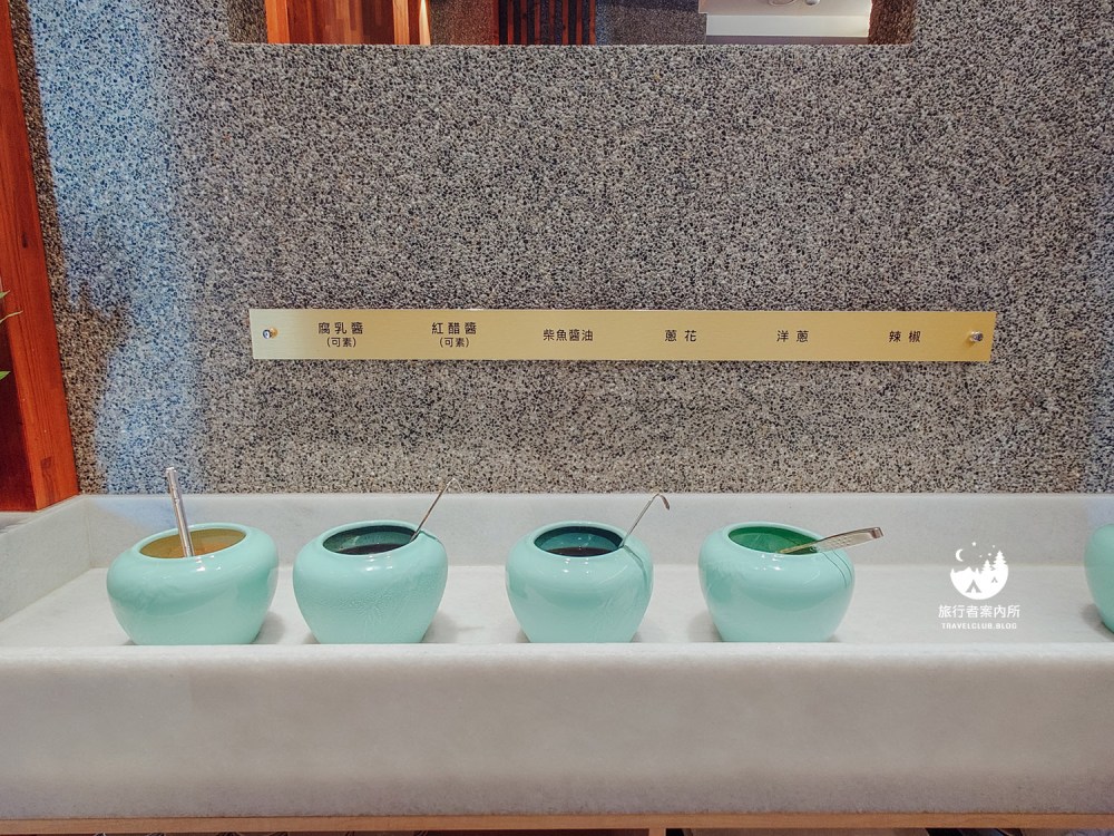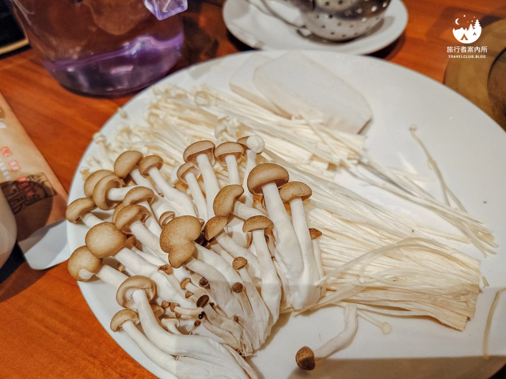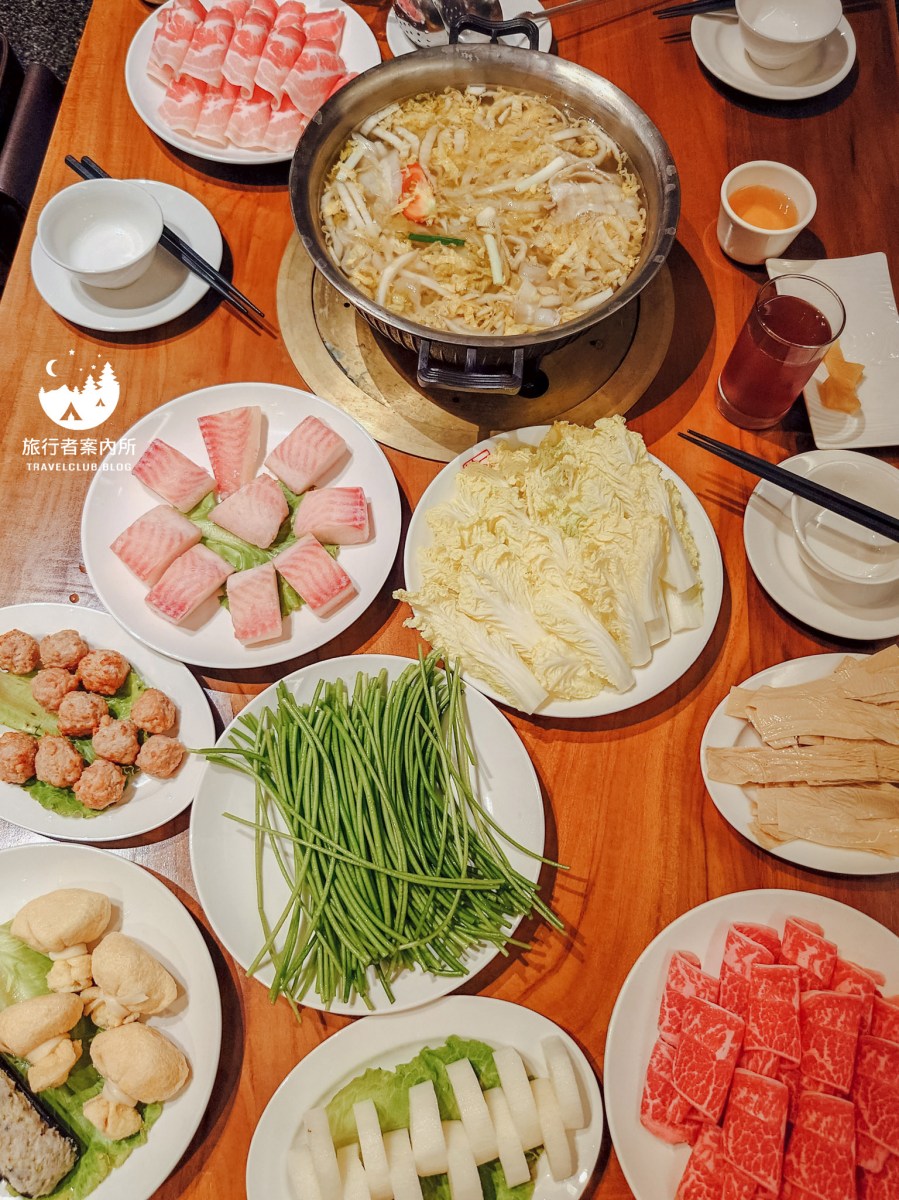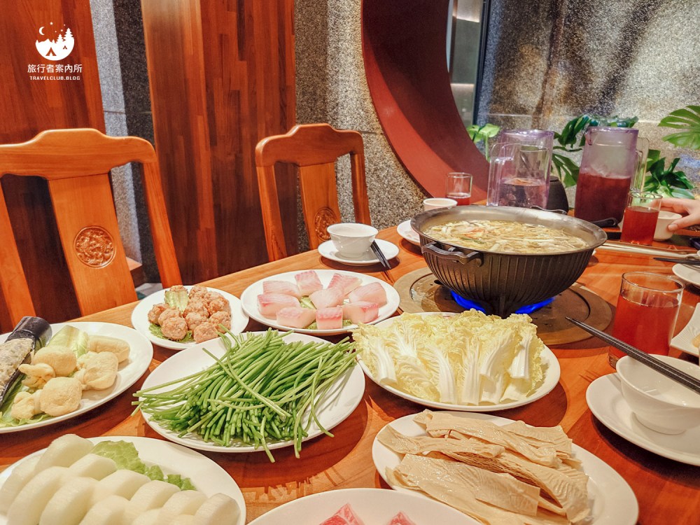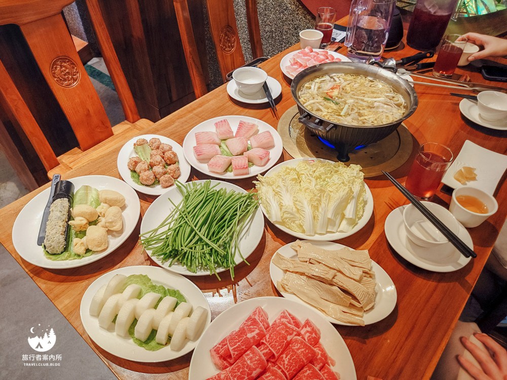鍋底有養生鍋、酸菜白肉鍋、麻辣鍋和鴛鴦鍋,其中酸菜白肉鍋免費續加酸白菜、麻辣鍋就是油豆腐與鴨血,和台中市區大部分共鍋火鍋的供應方式一樣,最後吃不完一樣可以加滿打包回家。