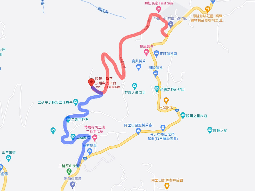 我這次走的是紅色路線,中油阿里山隙頂站房邊的產業道路!