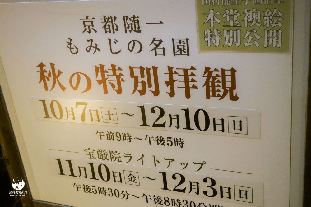 寶嚴院算是京都地區較晚見頃的地方,12月才來的朋友們不妨考慮看看,夜楓開放時間為pm5:30~pm8:30(8:00後停止購票入場)。