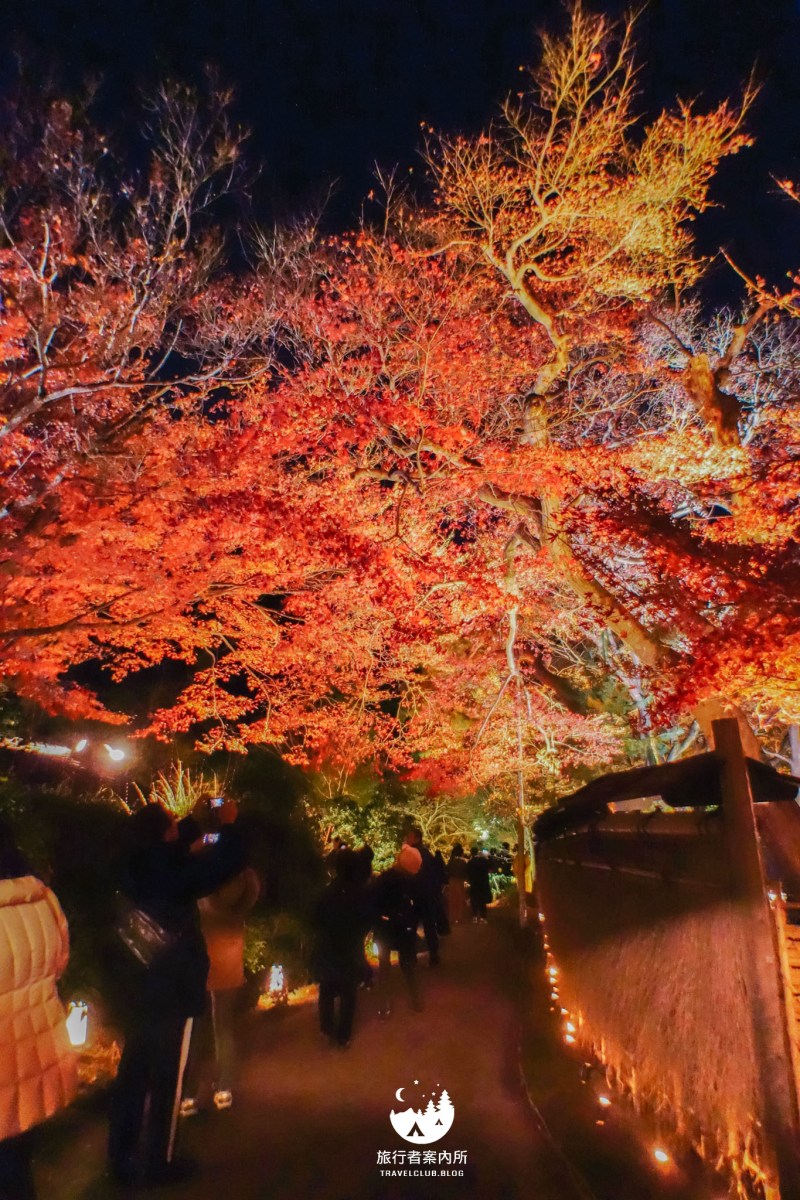 寶嚴院為了讓人流通順,規劃單一條的賞楓路線,我們是比較早一批進去的剛開始沒感覺,但隨著待的時間越長,就能感受到後面有不少的人潮持續進入參觀,果然是很熱門的賞夜楓景點,而且參觀者有不少是日本當地人喔!