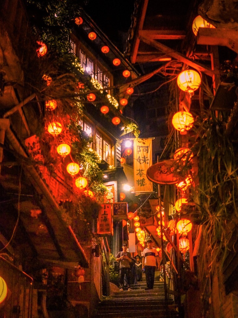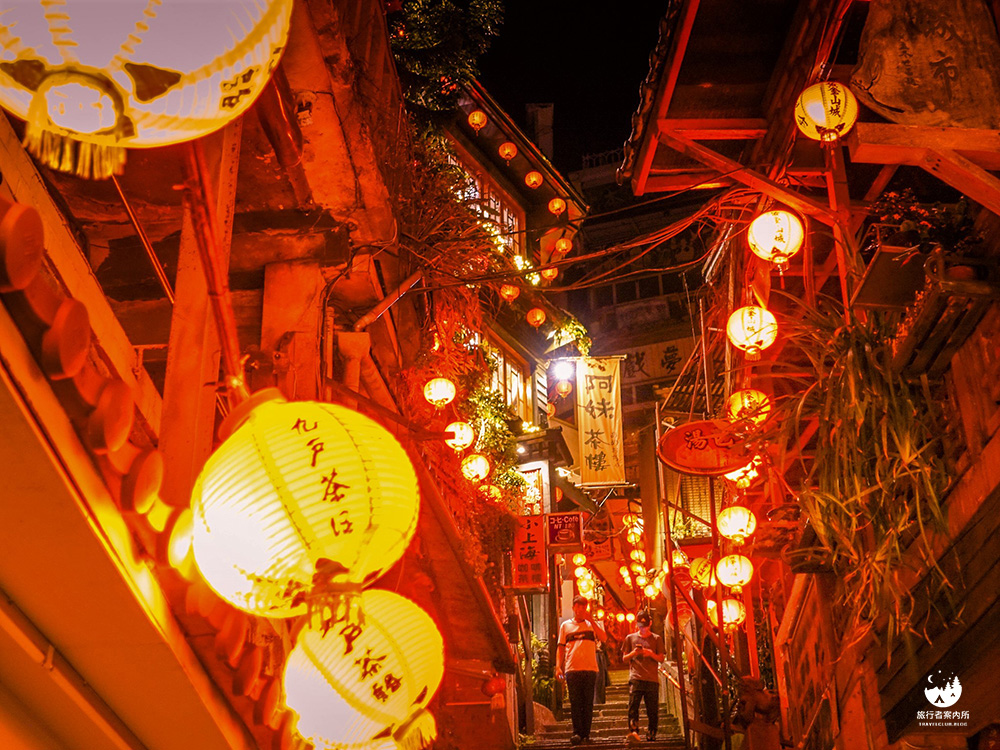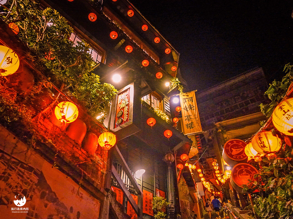 晚上的九份老街前半段也大部分都已經熄燈了,只有阿妹茶樓這區還會點著紅色的燈籠,我一路從九份派出所旁樓梯往上走,到昇平戲院後就可以看到一盞盞在夜間紅的迷幻的燈籠,這景色不用說外國人,連本國人都會覺得美看入迷。