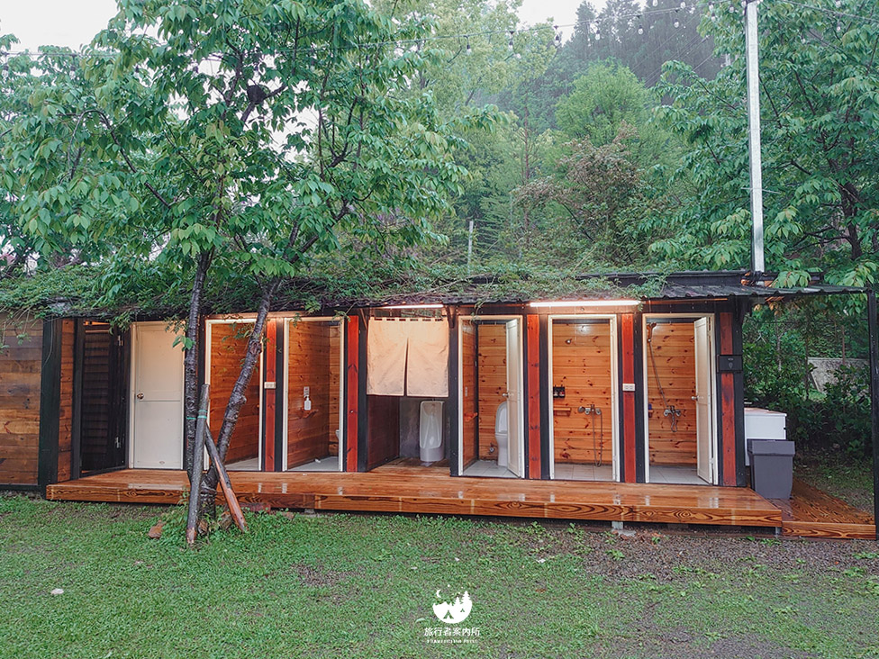 ▲帳篷對面就是共用衛浴區,有兩間女廁、一間男廁、還有四間淋浴區。