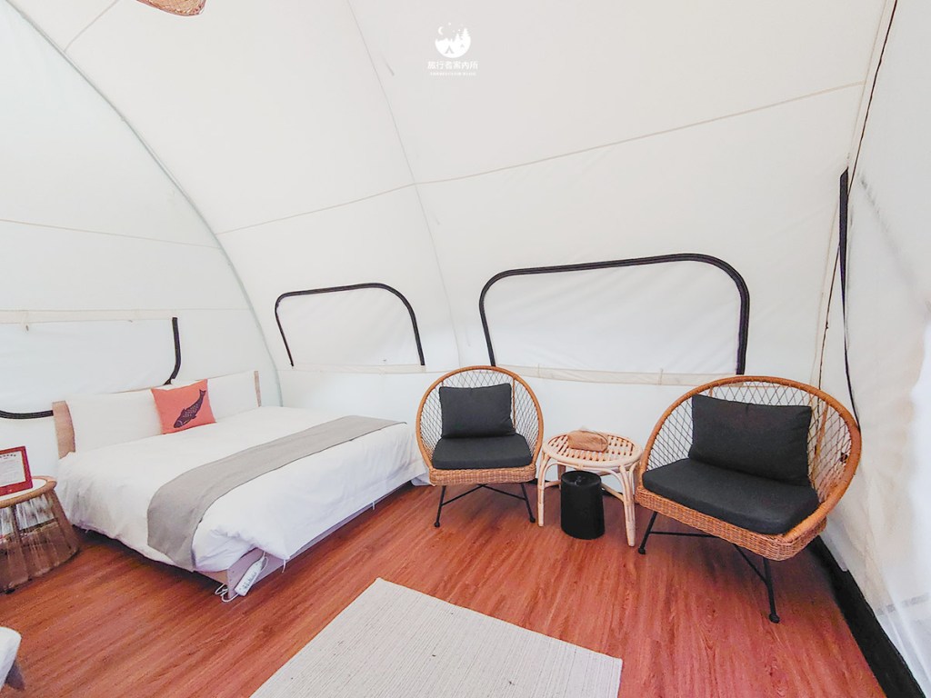 先說豪華露營跟一般露營比起來有什麼差別好了,基本上豪華露營(Glamping)就是幫你把帳篷、餐食全包好,帳篷不用自己搭還附舒適的床給你、不用自己準備食材生火去煮,簡單來說你真的就是只要帶換洗衣物來,免裝備就可以直接入住了。