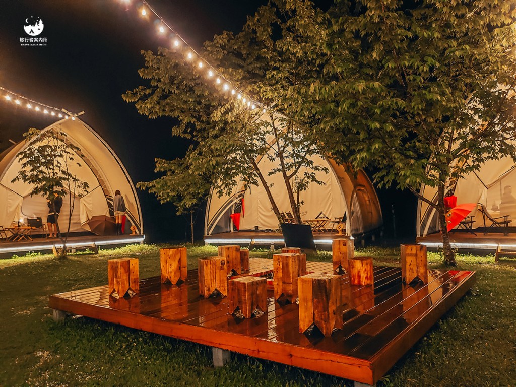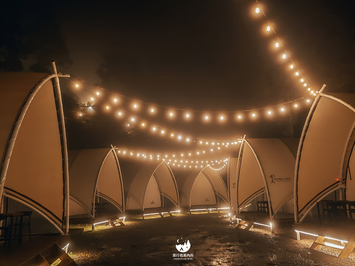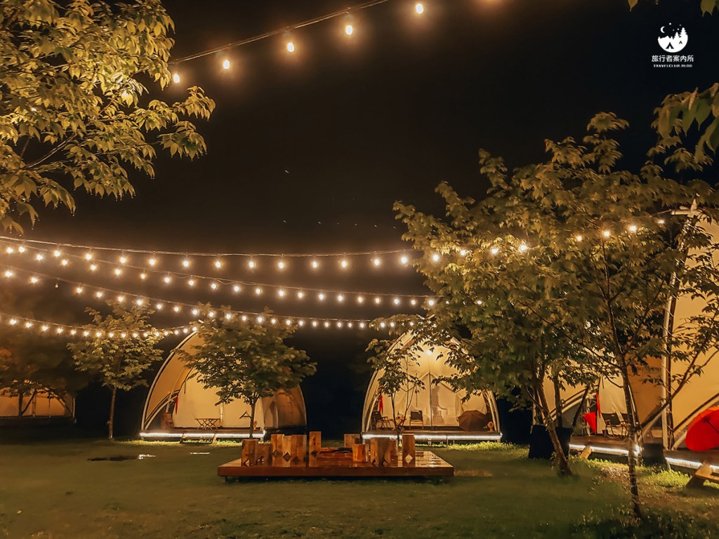 夜晚點燈後的豐收地營區