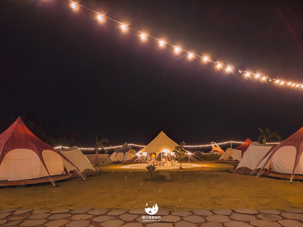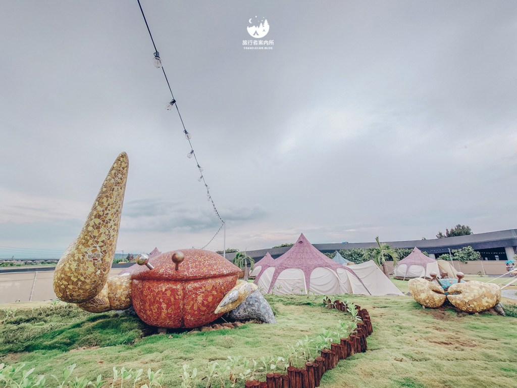 夜間稍微暗一些,因為沒什麼光害只有營區掛的燈泡做點綴,要不是今天天候不佳雲層很厚,這裡應該也是能看到星星的呢,夕陽漫漫因為是在溼地保護區內,所以不會升營火,但吃飽飯後會有個有趣的手作貝殼風鈴DIY活動。