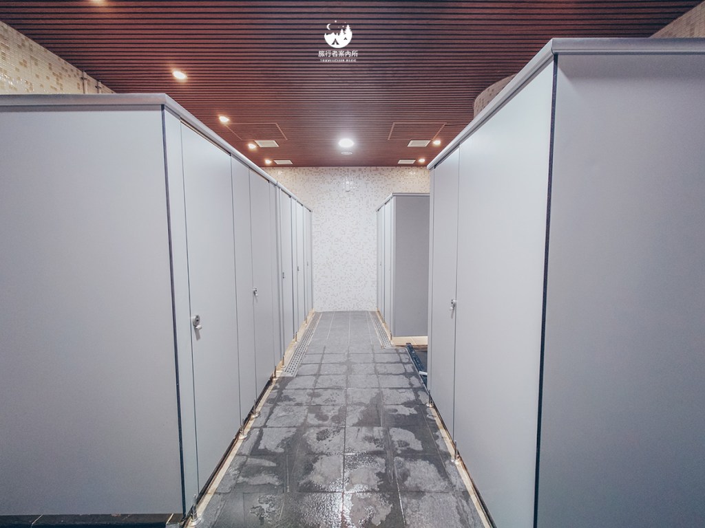 共用衛浴區是在遊客服務中心建築的1F,男女分開,從營區走過去只要30秒,但晚上這裡還是比較暗的,若有小朋友、長輩,記得要攜伴前來會比較好,安全上是不用顧慮的,基本上過12點都還會有房客在沐浴,畢竟入住豪華露營,都會比較HI一點。