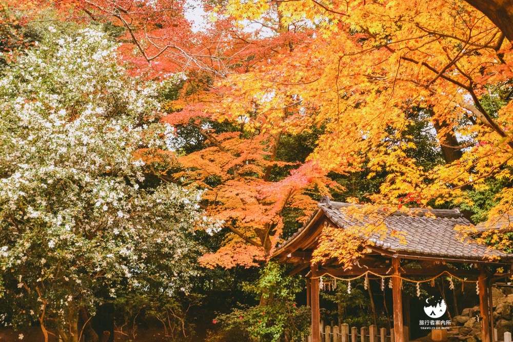 勝山公園這裡沒有鋪天蓋地的楓葉,但黃的黃、綠的綠,整體層次相當漂亮,搭配一些神社寺廟建築,更多了些雅趣,也因當時沒有其他人所以取景相當自在,可以拍到你滿意為止。