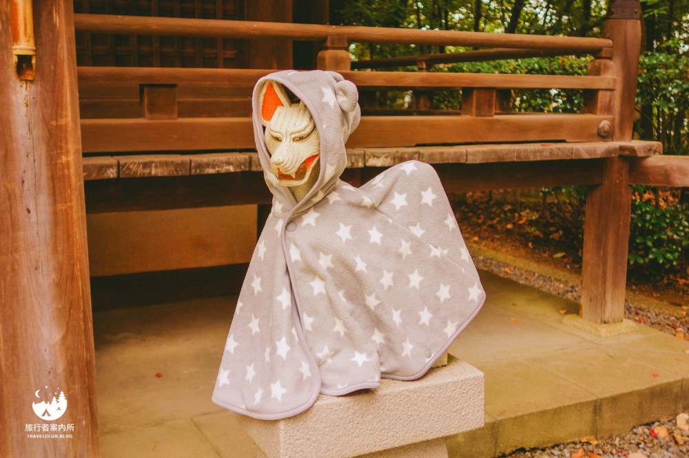 向日神社中也有小小的稻荷社,看這兩隻狐狸使者因為天氣冷,社方都為他們穿上了小斗篷,真是可愛!