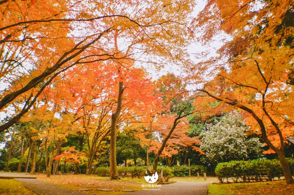 向日神社本社往後走連結著勝山公園,這兩處就是算一個賞風景點,後方公園的楓葉也正紅,平日午後沒有什麼人,只有看到三兩像是當地人的民眾來此處走走散步。