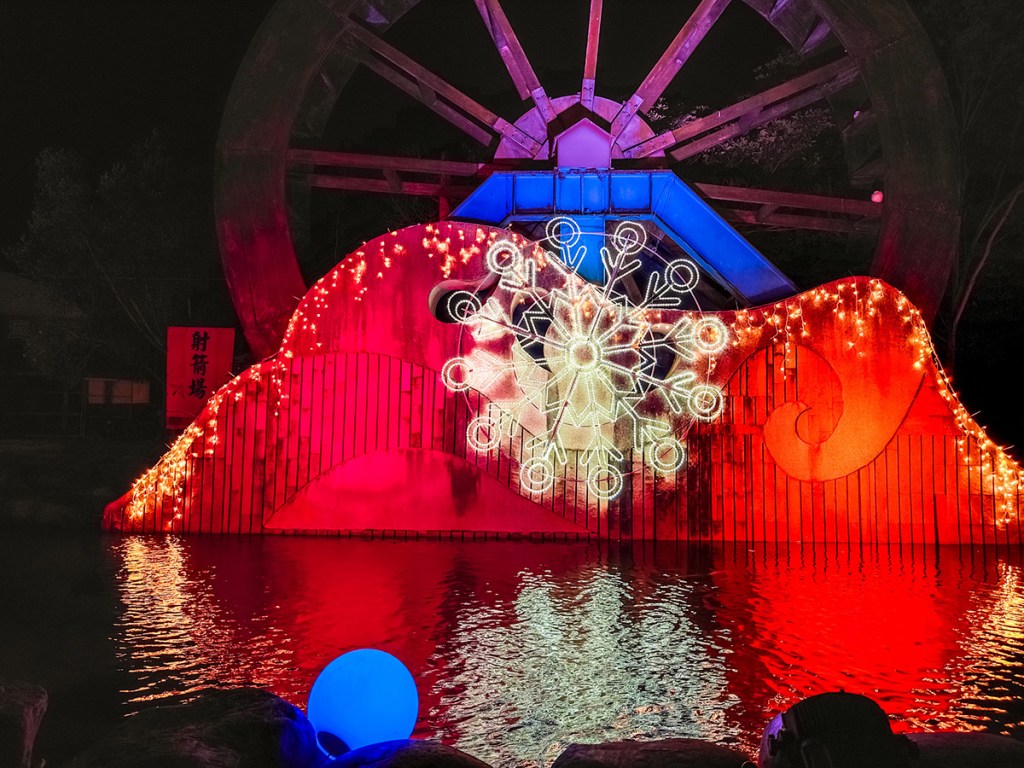 情人木橋區沒有什麼太大的變化,歷年就是會以改變橋上的燈飾為主,今年情人木橋上的燈淡薄了些,沒以往那麼澎湃。水車改成摩天輪、還有之前就有的愛心與兔子,大致上改變不大,但自成一區還是挺適合定點走走的。