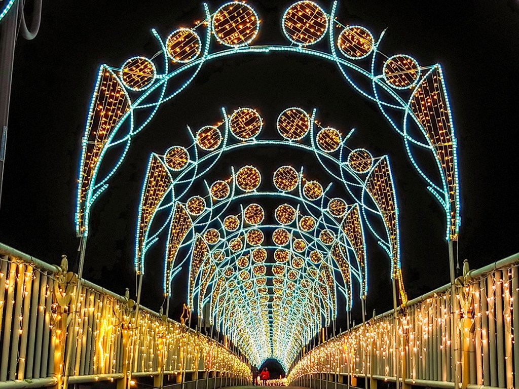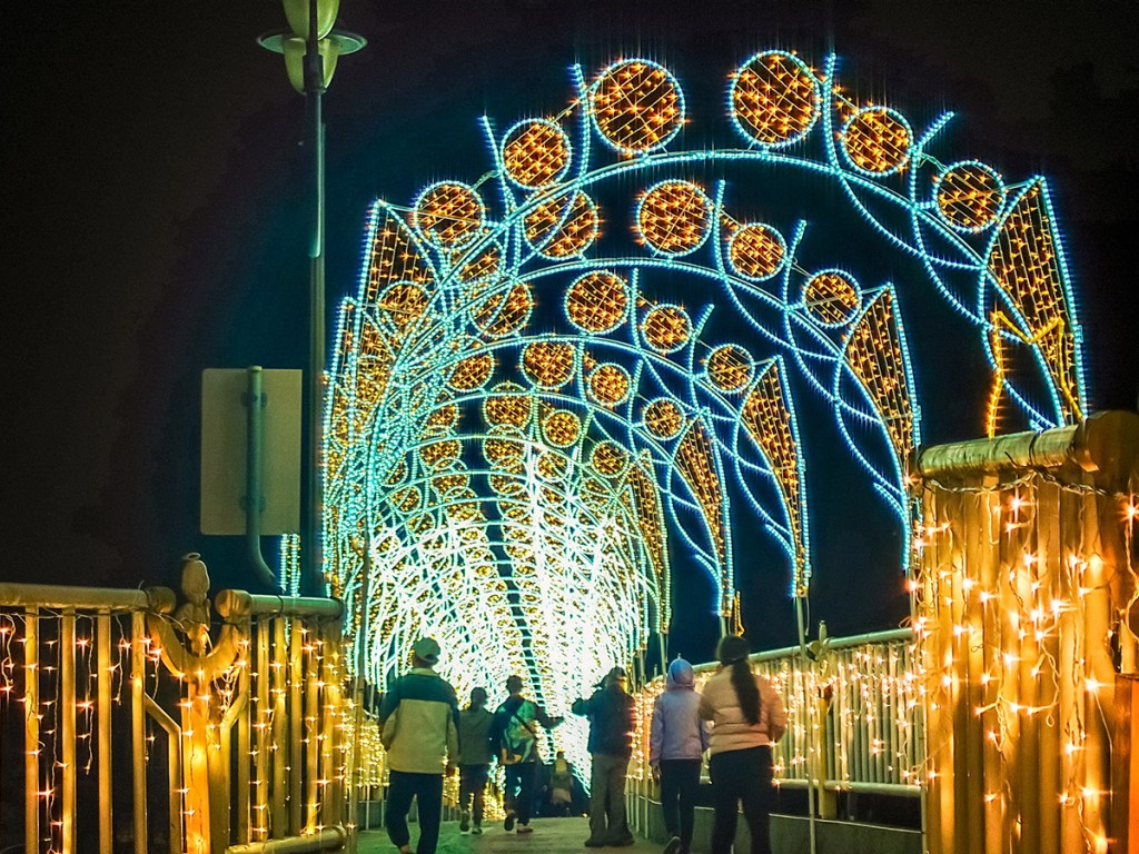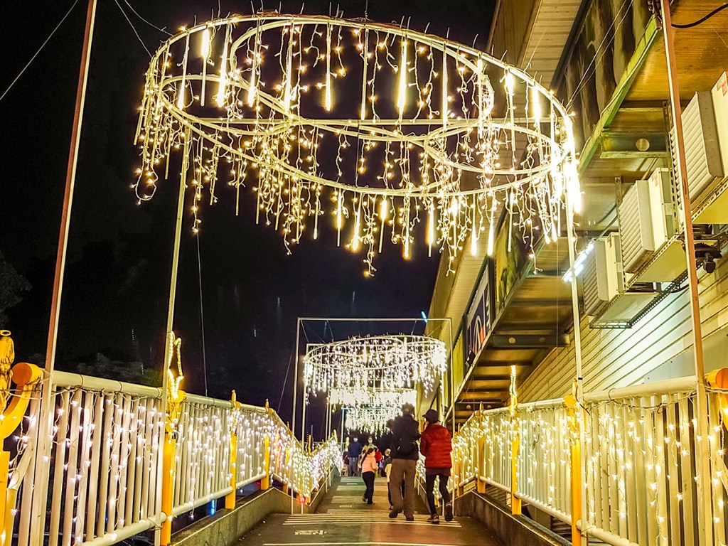 連接情人木橋與腳踏車道的天橋光廊必來!如果沒有來就像沒來過2022的石岡燈會喔!