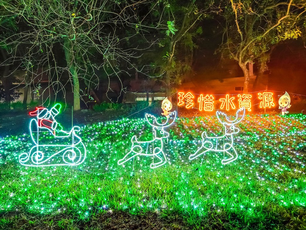 比較密集的燈飾還是集中於綠六廣場這裡,同時人潮也會比較密集,若不想走腳踏車到過來,那單純看這一區也是OK。近幾年可能因為燈飾會點到元宵的緣故,已不像之前主燈會點聖誕樹,像今年就是一台大大的留聲機。