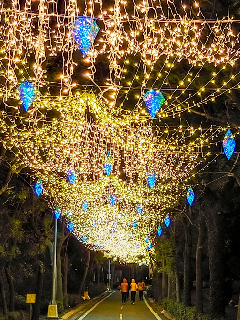 腳踏車道上也有不少光廊與造景,但老實說都是眼睛看比較美,不然如果想要效果好一點,可能要有照相功能(夜拍)好些的手機拍。