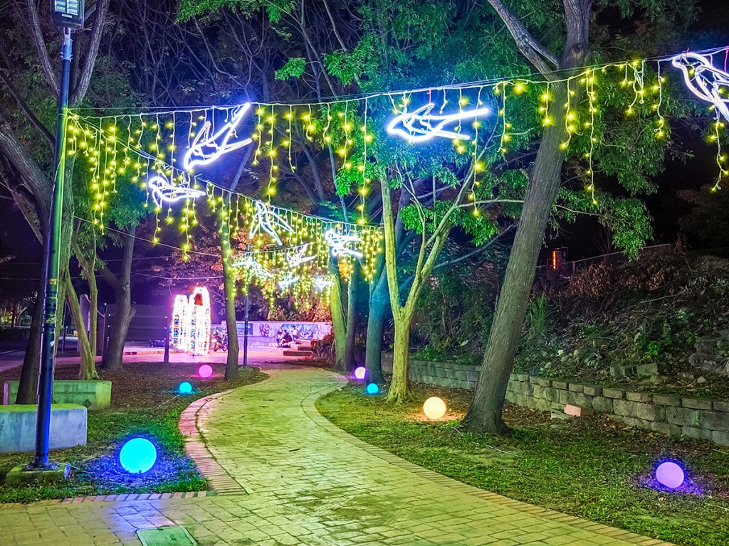 台中山城地區「石岡」,每年歲末都有個很美的石岡花燈(食水嵙溪石岡花漾藝術節),雖然沒有大肆宣傳,但去過的人都說還滿不錯的,而且平日去完全不需要人擠人,觀賞品質超好,每年的展出時間會從耶誕前夕到明年的元宵,提供當地民眾一個夜間散步的景點。