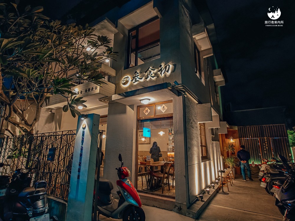 參食初是棟老宅重新裝修的餐廳,說實在以顏值來說確實是高,不論白天還是晚上都挺好看的,可以看見部分客人的機車就是直接停在門口旁的停車處或者是不影響巷弄進出的路旁。