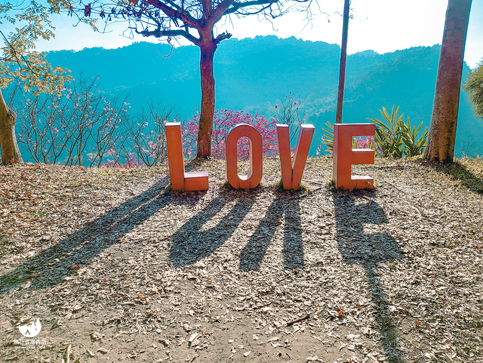 LOVE造景是一個分界,大部分若是要賞八重櫻的朋友們到這裡就不會再走上去了,附近也開滿的幾株八重櫻,可以於這區的涼亭休憩賞櫻。