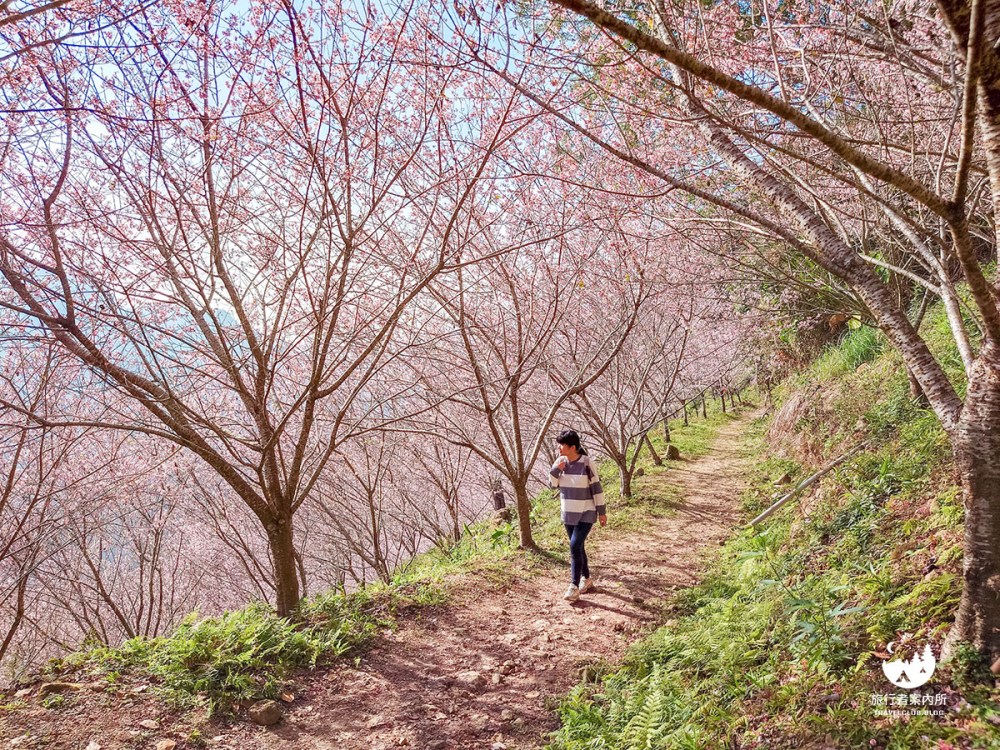 再往上爬就是較晚開的香水櫻和富士櫻的區域了,但八重櫻跟這兩種櫻花沒有辦法在同個時間綻放的(八重櫻較早、富士櫻/香水櫻較晚接在八重櫻後面),若你是在八重櫻尾聲才來,不妨往上爬走到最頂端賞賞沐心泉的香水櫻秘境。