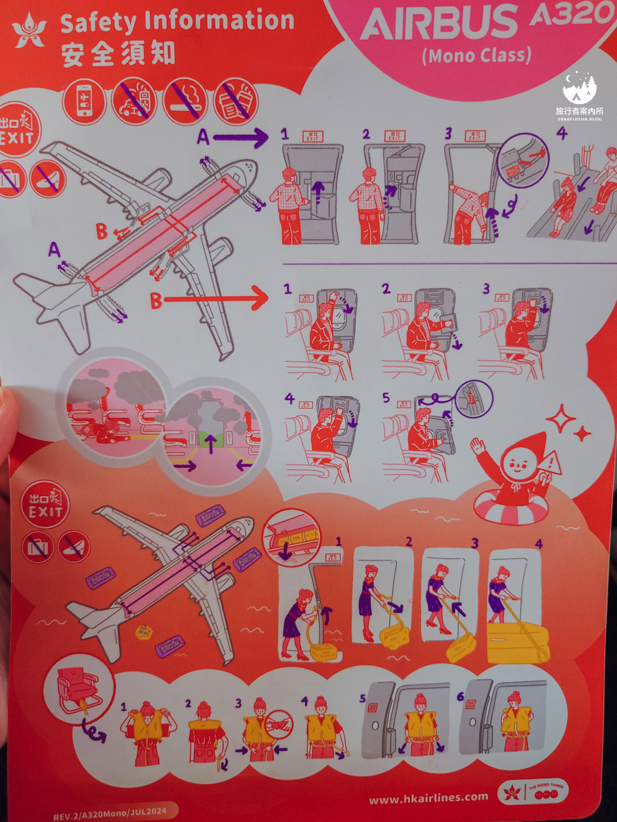 坐位前方除了免稅商品雜誌外,還有可愛的圖示版機上安全須知,沒有太多文字說明,可能就是因為沒有文字所以我有認真看完,當然的起飛前空姐也會實際示範一次。