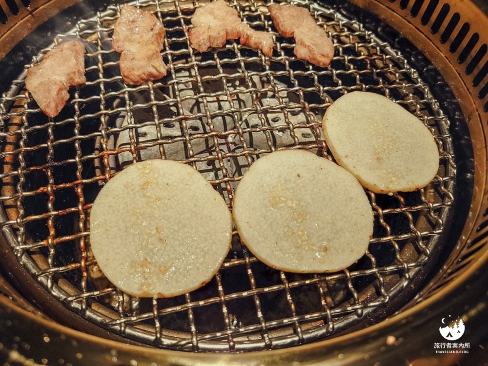 茶六的套餐中,除了沙拉外唯一的蔬菜就是山藥,一份六片一人3片,我個人很喜歡吃日本山藥,烤到雙面出水有些乾後就可以吃了,脆脆的很好吃,另外山藥也可以潤胃,還記的你剛才吃多少肉肉嗎,讓山藥來幫你消化一下。