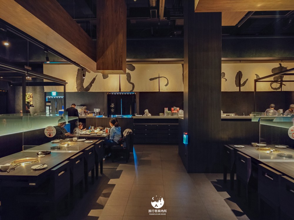 茶六中清店整體環境比較暗,配色走暗色調,主要是靠座位上方的暖色燈光照明,整體比公益店還要再暗許多,剛進來時會覺得有些黑但過一下子就適應了,畢竟吃燒肉也不需要一直走動,主要走來走去的都是服務人員而已。