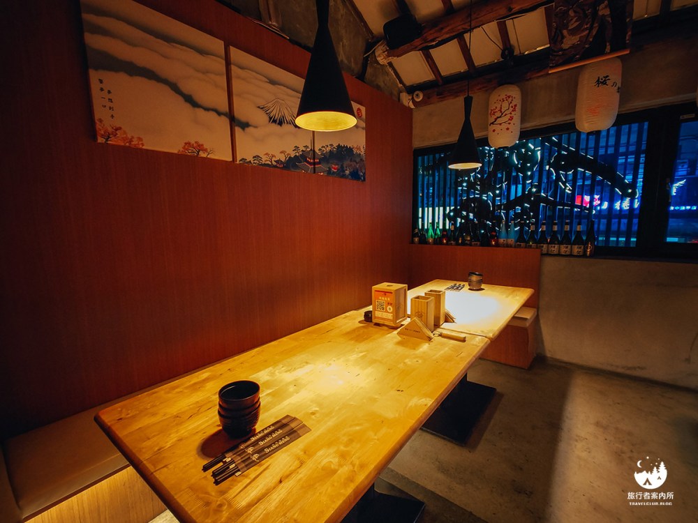2F設計感整個跟1F不一樣,如果說1F像壽司店,那2F就真的很有居酒屋的風格啦,店內會播放著現在最流行的日本音樂,牆上還設計成日式窗戶的樣子,有櫻花與富士山陪伴,誰不愛!!