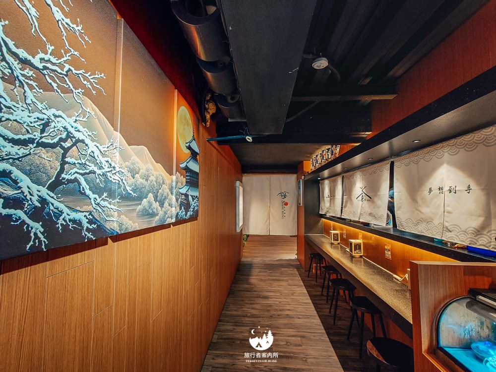 饗夢居酒屋整棟建築外觀裝潢滿有質感的,Asta第一眼覺得是來到了日本銀座的燒肉店,走進內部1樓是以料理吧台為主的配置。