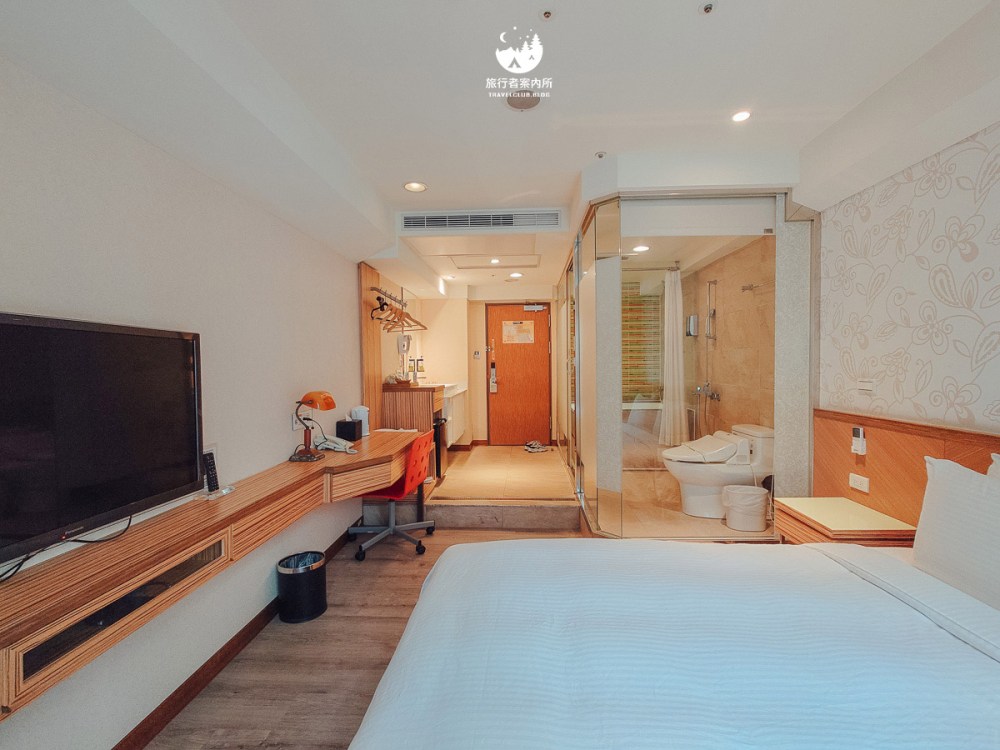 上面這張圖看的出來這間房間整體配置上是還不錯的,我覺得以價格上來說除了隔音外實在沒啥好挑剔,千元飯店我還沒住過隔音好的(笑)。另外廁所部分從這面看為透明,但上方是有拉簾可以拉下來完全遮蔽,所以朋友們來住也不會太尷尬,只是浴室是半開放式沒有門且乾濕並無分離,這點Asta覺得要特別提出來一下。