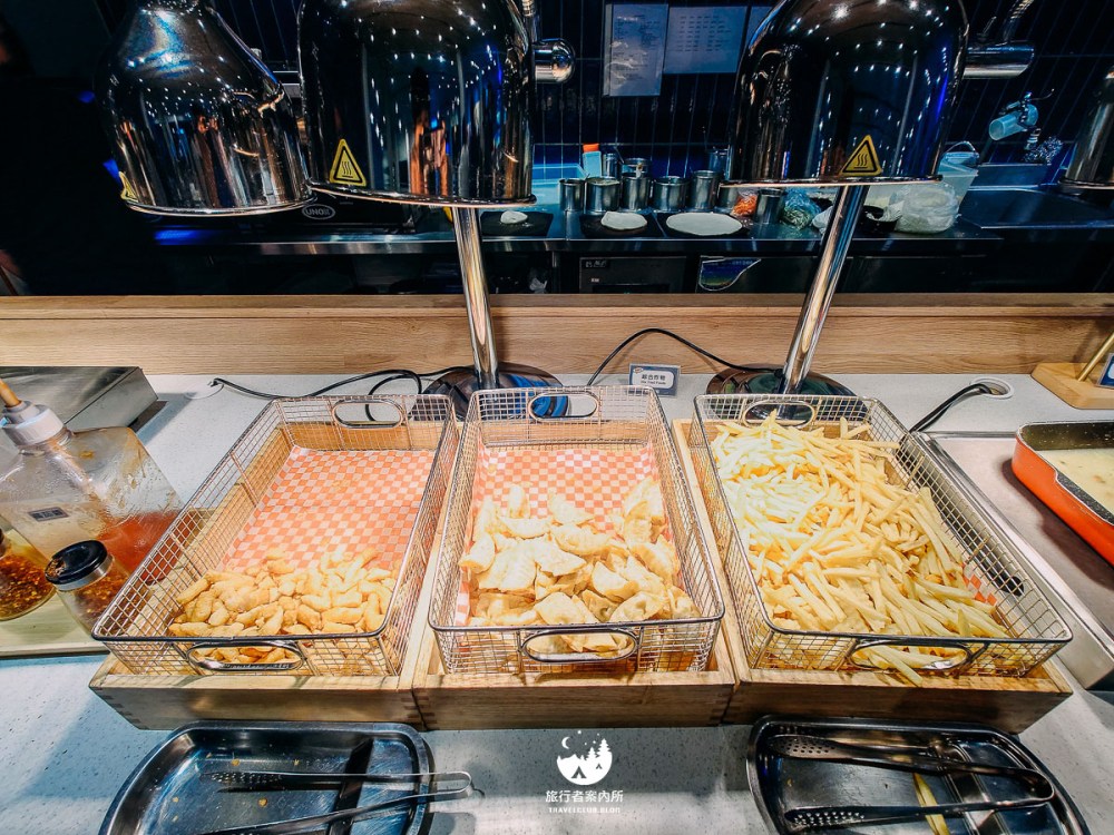 炸物種類也不少,基本款有薯條(有直的跟波浪薯)、雞塊、甜不辣,我覺得最好吃的是甜不辣,甜不辣是台中口味的很好吃!主廚料理區似乎是看當日食材與廚師心情,算是每日的驚喜包,當日有看到月亮蝦餅、軟殼蟹、咖哩雞肉,都是挺不錯的菜色。