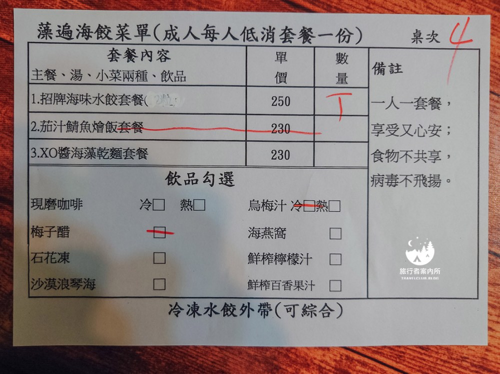 藻遍海餃低消為一人一份套餐,套餐也就幾樣相當簡單!