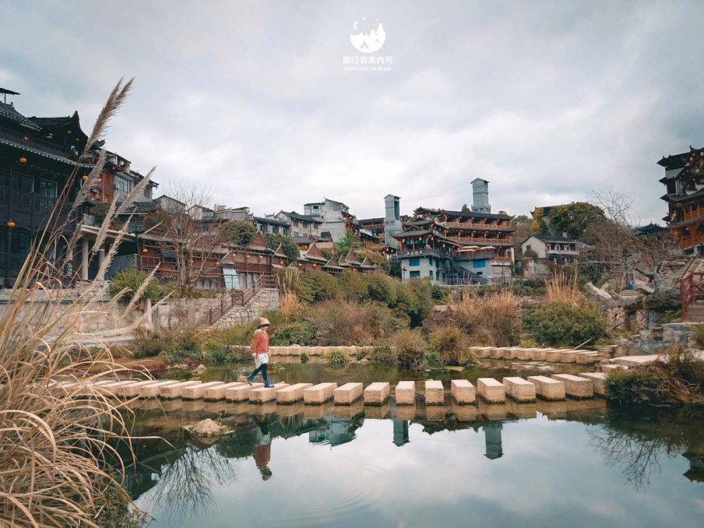 從民宿一旁樓梯往下走,就可以抵達芙蓉鎮內的「跳岩」區!