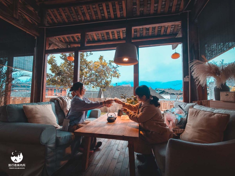 店內為半開放式空間,我們2月來當然是冷了些,但環境覺得很喜歡所以選擇於此處歇腳,點了一壺莓茶小憩片刻,聽店員說這間店是晚上才會比較熱鬧,也是,芙蓉鎮就是晚上才精彩。
