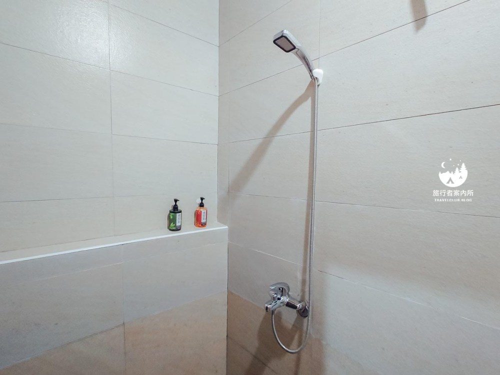 這間浴室是長方形的,正中間是臉盆,左邊是淋浴區、右邊是馬桶,某方面來說也算是一種乾濕分離,除非你洗澡時水真的很會噴,不然馬桶那側基本上還能保持乾爽。
