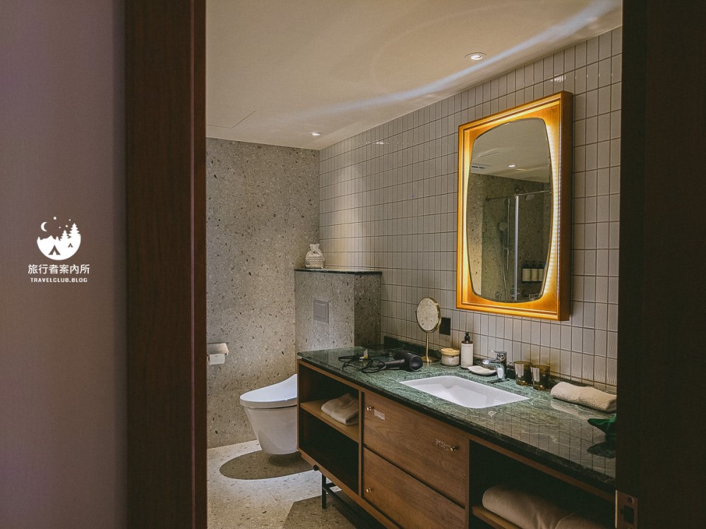 我個人就很喜歡大浴室,洗臉台的櫃子還是大理石平面頗有質感,空間大也就能放衣物和其他私人物品,環境那麼好,晚上就讓人想泡澡放鬆啦。