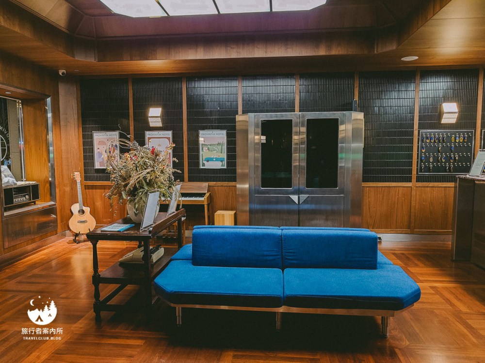 大廳環境很簡單,提供簡單的椅子供房客休息,另外一樓也可租借黑膠唱片回房聽,Asta就有租了兩片回房間試試,電梯有兩台,速度挺快的上下樓都不用等太多時間。