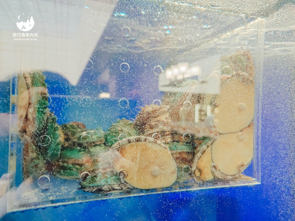 現場有兩個海鮮櫃,想吃現撈活體海鮮如松葉蟹、活龍蝦、鮑魚等就是以現場提供的為主(時價)。