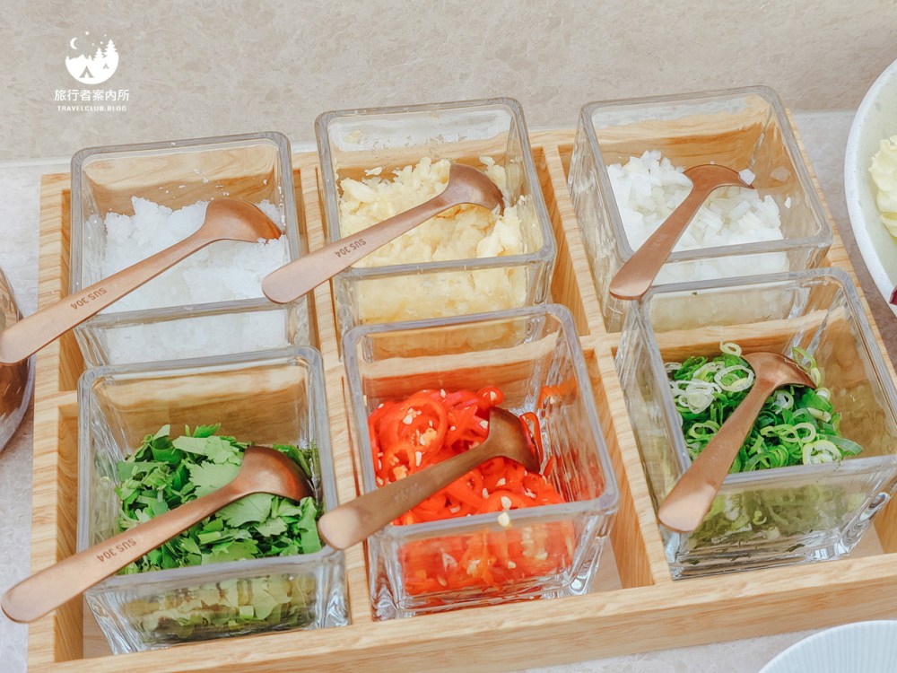 點完後會先上醬料,醬料非自助而是服務員會拿到你面前讓你添加,比較特別的是這裡竟然有香菜,身為香菜愛好者當然是加好加滿。