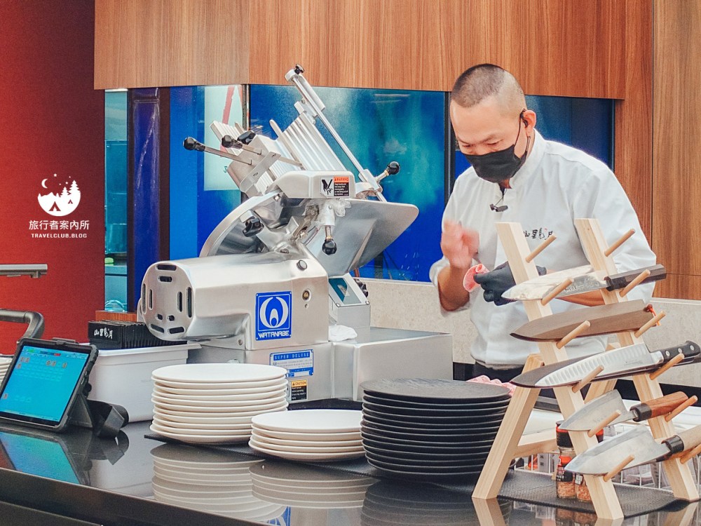 中間是料理區,一桌現場刨肉、另一桌是海鮮料理區,餐點都是現點現做,若有客人點選先撈海鮮,部分料理過程也都可以親眼看到,讓顧客近距離欣賞師傅精湛的手藝。