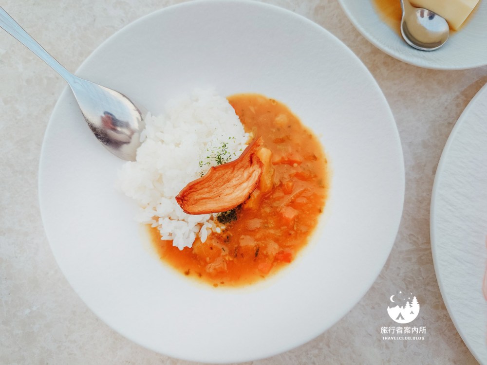 主餐的副餐部分我們選日式烏龍麵和日式咖哩飯,都不會太大份所以不用擔心占用胃的空間,烏龍麵Q彈也是走清淡健康的路線、咖哩飯就口味稍重帶點小辣但相當下飯,大概三口就解決乾淨了。